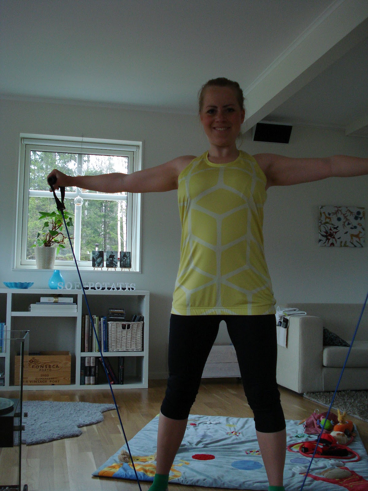 Eftersom jag fortfarande är lite förkyld ville jag inte köra något jätte tungt styrkepass idag, utan satsa på ett lite lättare med gummiband. Jag lät mig inspireras av gummibandsövningar här och här för att få lite nya tips på övningar man kan göra.