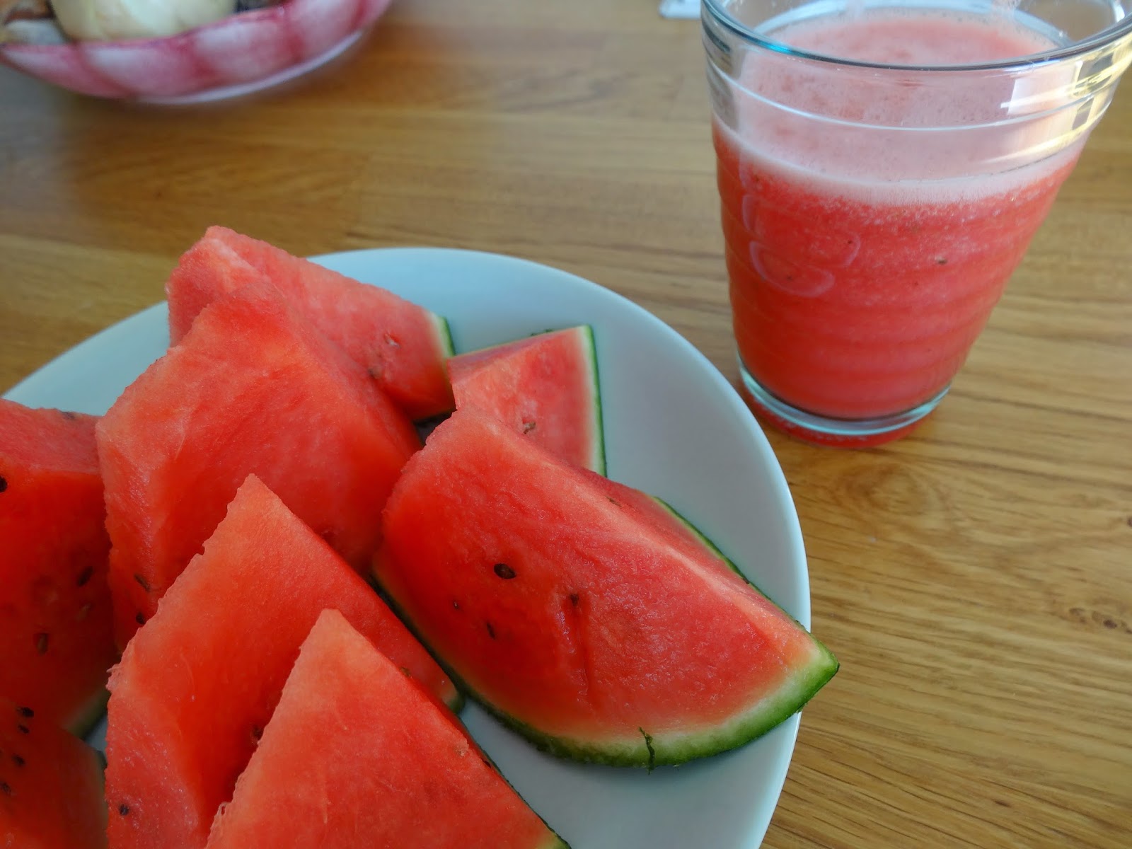 Vattenmelon är en av de mest somriga frukterna. Svalkande, söt, god och somrig. Jag gillar att äta den som den är i klyftor. Men att mixa den till en läskande smoothie visade sig också vara gott. Det gjorde jag idag.