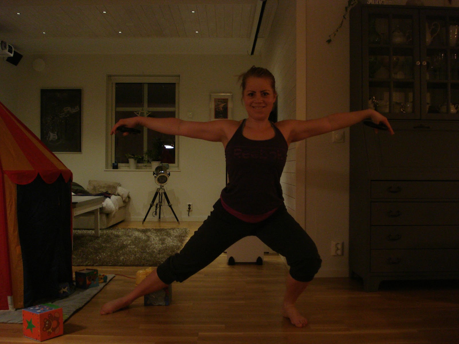 Avslutade passet med att göra ett gäng djupa knäböj. Sedan var det hög tid att göra oss i ordning för att gå till förskolan och sedan tåget.