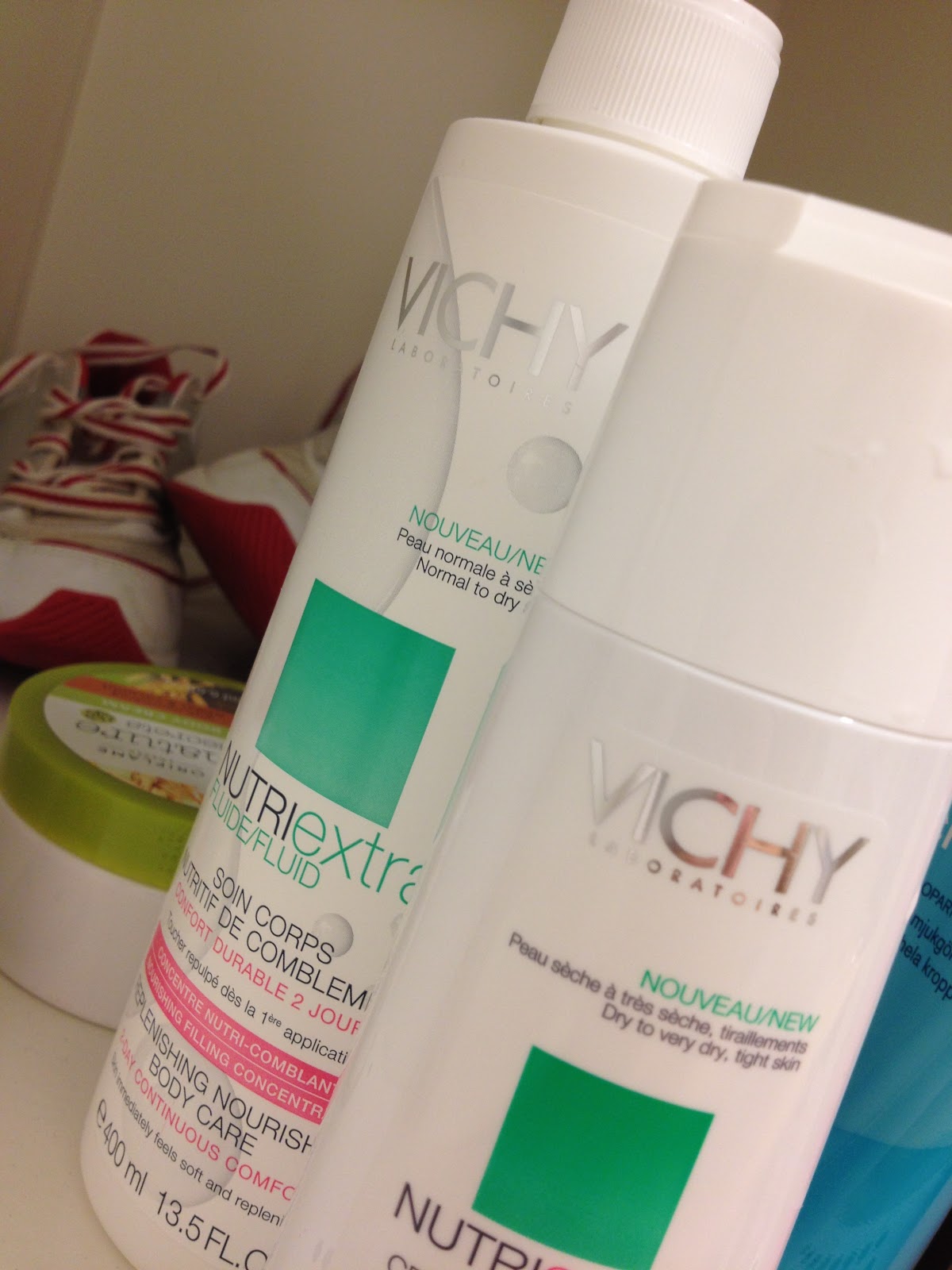 Att ha ett omklädningsrum med dusch och eget skåp är ett stort plus. Jag har alla mina duschgrejjer och något ombyte i skåpet så att jag slipper släpa detta fram och tillbaka. Just nu duschar jag och smörjer in mig Vichy’s produkter. Fräscha produkter som återfuktar huden!